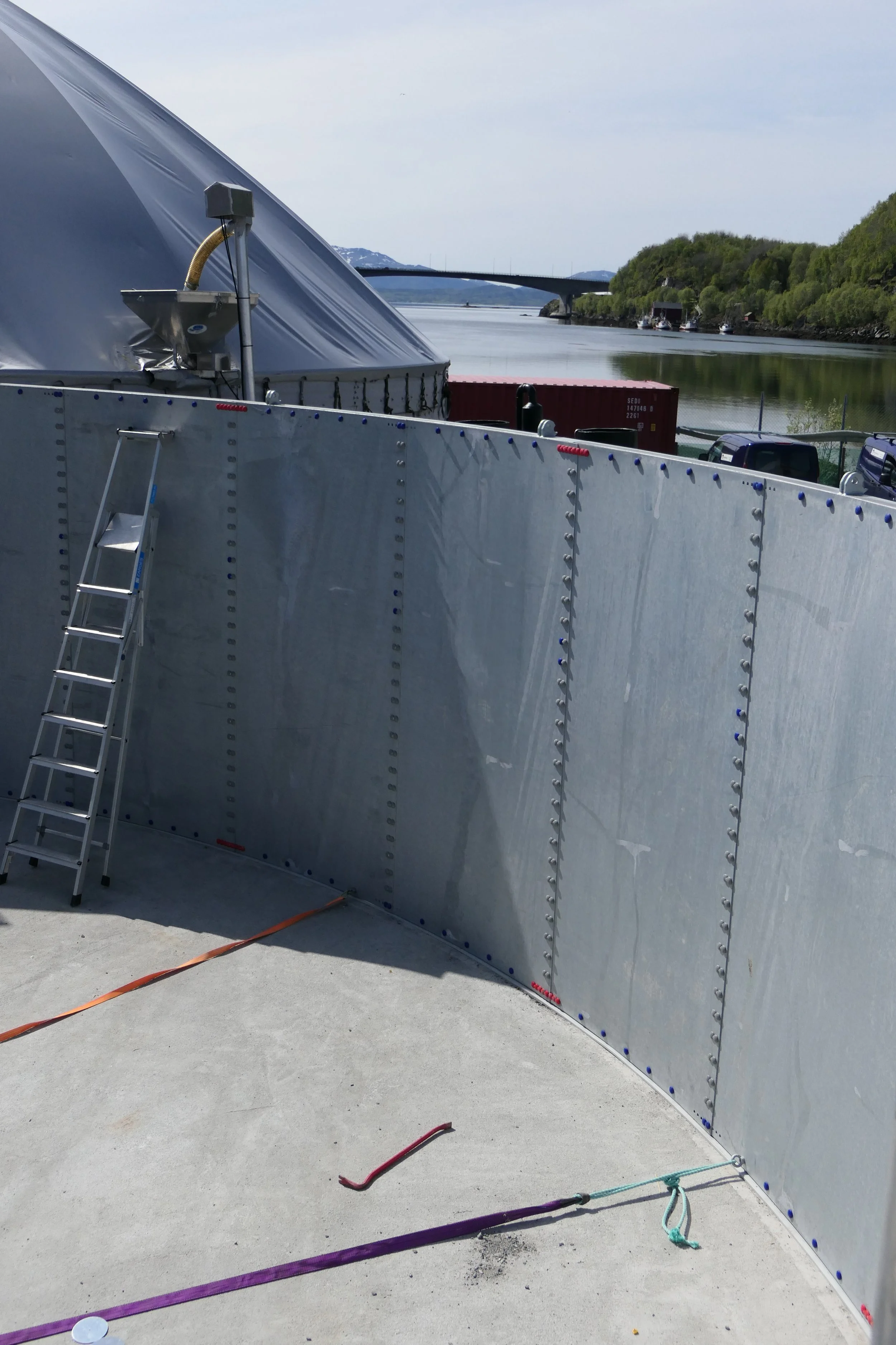 Med skreddersøm er nye ståltanker med PE-liner i vegger og bunn på plass. Sammen med våre samarbeidspartnere har vi tilbudt et komplett oppsett med nye kar, samt telt til kunde.